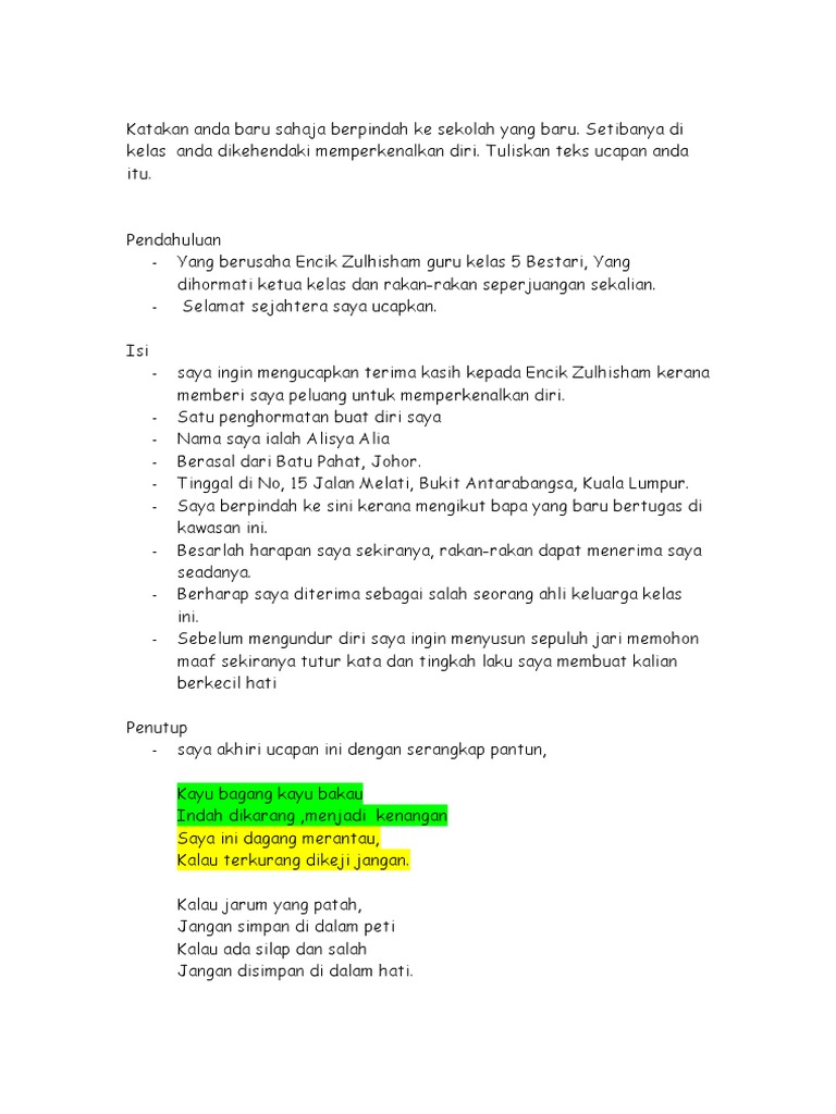 Ucapan Memperkenalkan Diri Pdf
